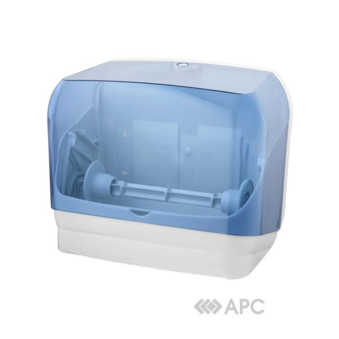 Диспенсер для бумажных полотенец 602 изготовлен из качественного прочного пластика. Он предназначен для использования с бумажными полотенцами, что составленные V-укладкой или в рулонах. Оптимальный для эксплуатации в туалетных комнатах больших рабочих предприятий и заведениях общественного питания, а также подойдет для домашнего пользования. Диспенсер крепится к вертикальной основе на дюбели. Верхняя часть аксессуара выполнена в лаконичном голубом цвете.