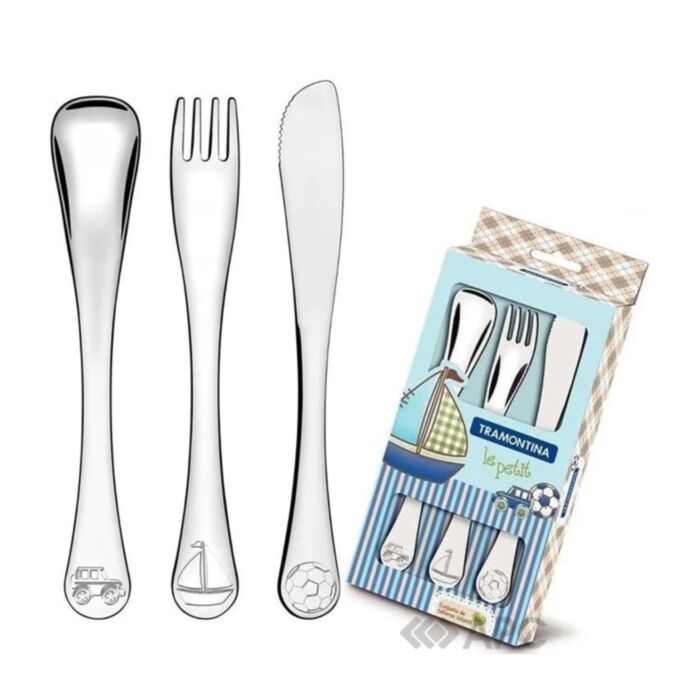 Детские столовые приборы Tramontina Baby Le Petit — это необходимые принадлежности для ребенка, ведь имеют компактные размеры. Комплект насчитывает: вилку, ложку и столовый нож, производимый из высококачественной нержавеющей стали. Наличие выгравированного рисунка заинтересует малыша, вызовет положительные эмоции. Все края изделий округлены, поэтому гарантируют безопасность. Принадлежности можно очищать в посудомоечной машине. Данный комплект отлично подходит на подарок для мальчика, ведь имеет голубую, подарочную упаковку.