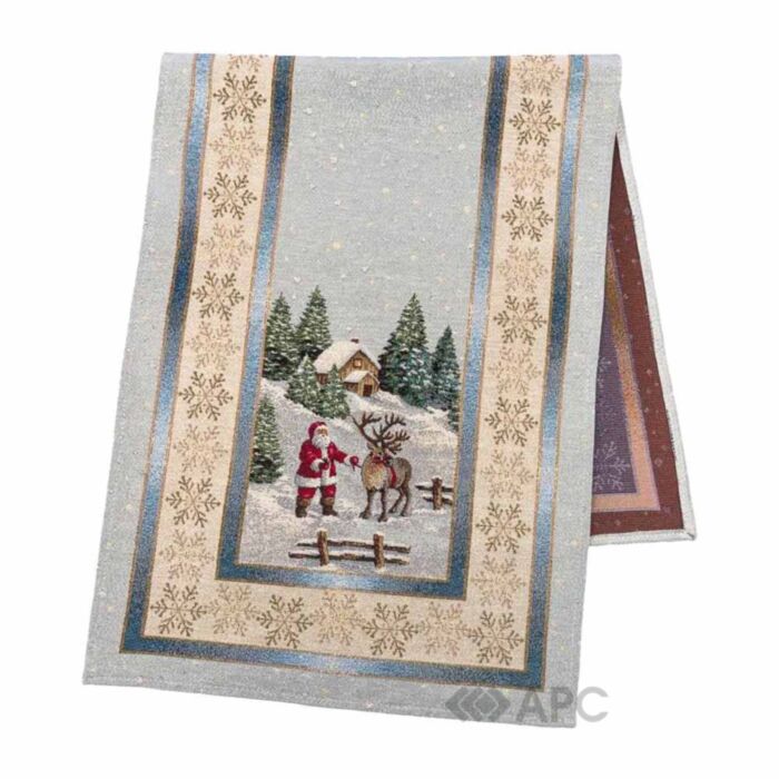 Limaso RUNNER723C-37 Рождество в Карпатах 37*100 см - гобеленовая дорожка способна освежить интерьер и сделать любой стол праздничным. Всем нам хочется тепла и приятных эмоций. Внести немного уюта и легкости в повседневную жизнь очень просто. Каждый раз, когда Вы будете садиться за обеденный стол, стильная дорожка с праздничными мотивами будет радовать Вас. Кроме отличного внешнего вида она очень практична, поскольку защищает ткань скатерти от грязи и повреждений. Состав ткани: 70% полиэстер, 23% хлопок, 3% акрил, 4% металлическое волокно. Ткань легкая, приятная на ощупь, достаточно прочная. Такой декоративный элемент стоит, чтобы стать украшением стола.