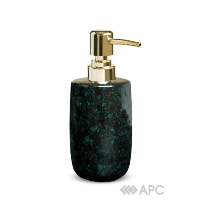 Дозатор жидкого мыла серии Beso доступен в зеленом цвете с глянцевым покрытием. Он украшенный неправильными зелеными пятнами и оснащенный стильным золотой помпой, носит уникальный и роскошный характер.