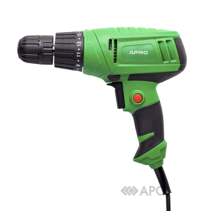 Сетевая дрель-шуруповерт APRO 899151 400 Вт – бюджетная модель для бытового использования. Представить ремонт без использования дрели очень сложно. Этот инструмент является одним из базовых в строительных и ремонтных работах, монтаже и демонтаже. Эффективность работы дрели зависит от качества конструкции, правильно подобранных насадок, а также вида используемой дрели, поскольку для некоторых работ лучше и конструктивнее использовать дрель конкретного типа. Баланс универсальности вытекает из того, для каких задач Вам понадобился инструмент. Дрель с функцией шуруповерта служит в первую очередь для закручивания и выкручивания шурупов и саморезов, но при этом более мощной, чем обычный шуруповерт. Диаметр патрона: 0,8–10 мм. Диаметр сверления: 8 мм для стали, 16 мм для дерева. Регулировка крутящего момента. Режим реверса.