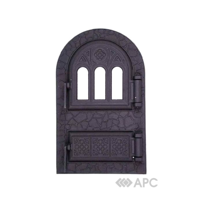 С помощью спаренной арочной дверки Булат Микулин с термостеклом Вы получите возможность регулировать уровень печной тяги, а также закладывать топливо в топку печи. Хорошая тяга необходима для того, чтобы печь производила жар, от которого напрямую зависит уровень и скорость обогрева помещения. Поскольку уровень тяги влияет и на скорость горения, следовательно, регулируя тягу, можно контролировать расход топлива. Все эти показатели можно регулировать, приоткрывая и закрывая дверцу поддувала, устанавливая определенное ее положение. Помимо этого, дверца защищает напольное покрытие от искр и продуктов горения (пепел, зола), которые могут вылетать из зольника печи. Предложенная модель подойдет как для замены неисправной дверцы, так и в качестве декоративного аналога рабочей, но менее интересной. Ее орнамент привносит нотки оригинальности в интерьер, а готические мотивы создают атмосферу средневековья. Наличие смотрового стекла создает неповторимый эстетический эффект. Материал: чугун. Размер: 33*53 см.