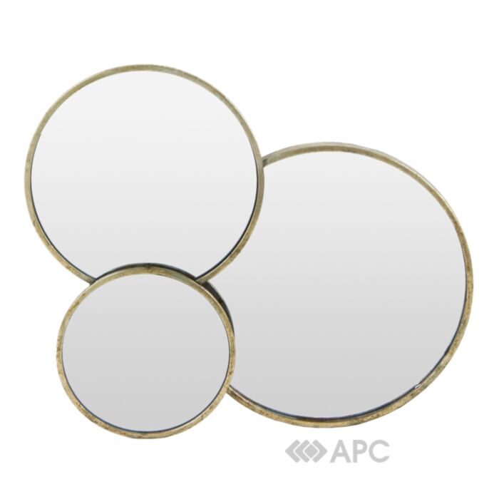 Зеркало Art-pol Casablanca 135655 77*61,5*3 см создает уникальную композицию, объединяя три круглых зеркала разных размеров на металлической платформе, которая имеет стильное обрамление в сером цвете. Благодаря хаотичному расположению, оно придает помещению неповторимый стиль и изысканность. Выглядит очень стильно и нестандартно, украшая и подчеркивая индивидуальность любого интерьера. С размерами 77 * 61,5 * 3 сантиметров, аксессуар обеспечит не только эстетический вид, но и функциональность. Золотистый цвет рамки и металлическая платформа создает великолепный контраст, дополняя интерьер теплом и изысканностью.
