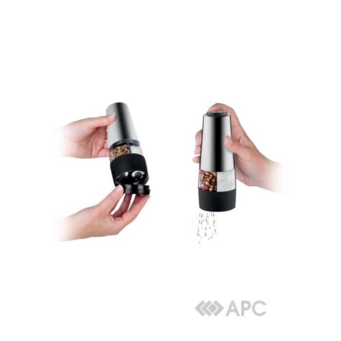 Электрическая мельница для приготовления свежемолотого перца и соли. Первоклассный механизм имеет керамические колесики для тщательного перемалывания. С удобной закрывающейся крышкой, что не позволяет рассыпаться остаткам специй. Изготовлена из высококачественной нержавеющей стали и прочной пластмассы, снабженную мощным двигателем. Батарейки не входят в комплект. Инструкция для использования внутри упаковки. Вес: 434 г.