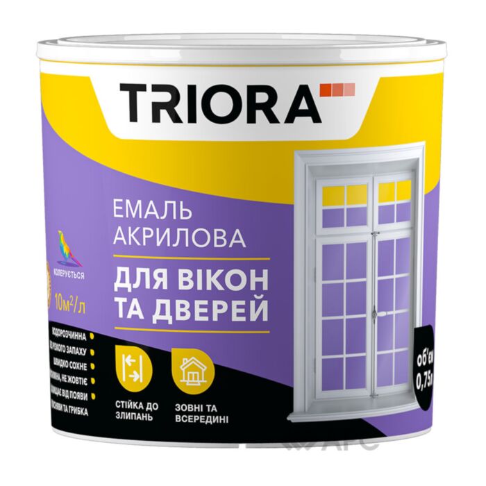 Купить эмаль акриловую Triora для окон и дверей можно в интернет магазине АРС. У нас всегда актуальная и доступная цена. Доставка осуществляется по Украине - Киев, Харьков, Львов и др.