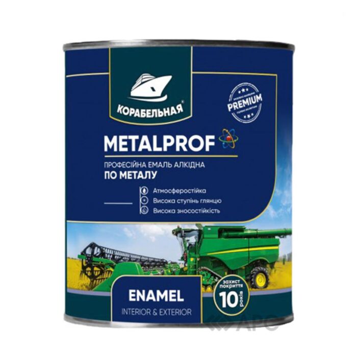 Эмаль алкидная Корабельная METALPROF ENAMEL — это лакокрасочное покрытие, имеющее универсальное применение, подходящее для металлических, деревянных и других поверхностей. Характеризуется высокой стойкостью, яркостью цвета, сохраняет свои декоративные свойства до 10 лет, разрешается нанесение на оцинкованные плоскости.