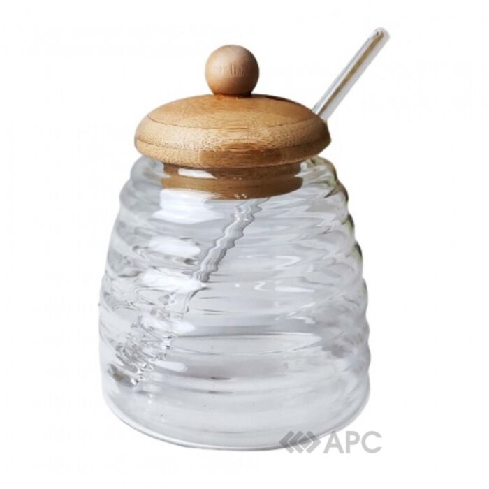 Емкость для меда Olens Медобор — это сосуд с удобной, специальной ложкой – веретеном, удобно использовать для хранения, а также подачи переработанного нектара. Обладает стильным, символическим дизайном, станет украшением любого стола. Преимуществом является наличие деревянной, бамбуковой крышки, защищающей от попадания пыли или насекомых. Банка и ложка изготовлены из прочного, качественного стекла, долго сохраняющего свой первоначальный вид. Легко очищается как в посудомоечной машине, так и вручную. Объем изделия: 200 мл.