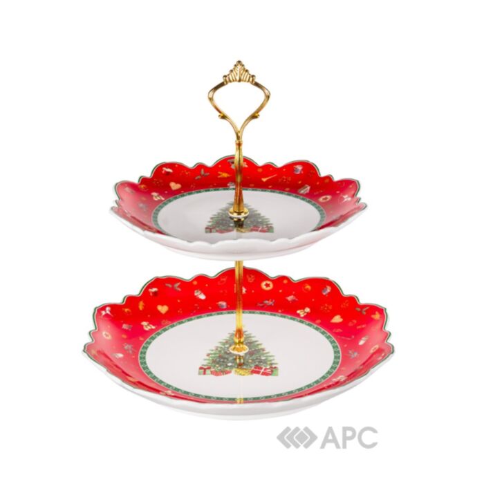 Этажерка двухъярусная Lefard Christmas Delight 985-211 – это изысканный элемент праздничной сервировки, используемый для стильной подачи десертов, фруктов, небольших закусок или конфет во время зимних праздников, таких как Рождество и Новый год. Конструкция этажерки состоит из двух фигурных ярусов, изготовленных из высококачественного фарфора, установленных друг над другом на металлической ножке с кольцом для удобной переноски. Дизайн «Christmas Delight» предусматривает праздничное оформление с яркими и теплыми рождественскими мотивами. Эта двухъярусная конструкция не только выглядит элегантно и торжественно, но и позволяет эффективно использовать пространство на столе, размещая больше угощений на вертикальной плоскости. Этажерка Lefard 985-211 является прекрасным дополнением к другой рождественской посуде, создавая целостную и праздничную атмосферу на столе, и может стать центральным украшением десертной зоны.