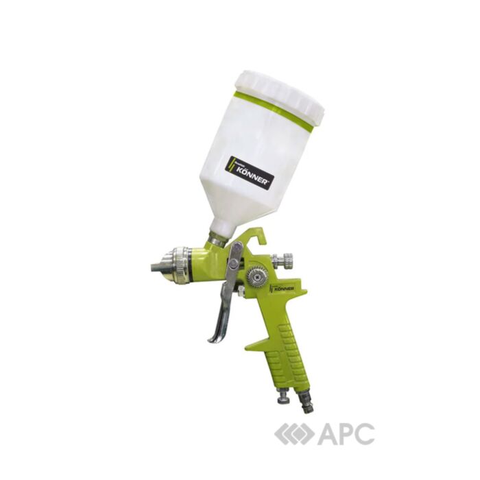Краскопульт пневматический Konner 52-712 с технологией HVLP, которая предусматривает использование больших объемов воздуха при низком давлении. Частицы материала, распыленны при низком давлении сжатого воздуха, имеют невысокую скорость и образуют мягкий покрасочный факел. Его можно использовать на разного рода производствах, а также на станциях технического обслуживания и художественных мастерских. Кроме того, такими пистолетами можно проводить качественные бытовые покраски (двери, мебель, полы, потолки, стены, фасады домов, заборы).