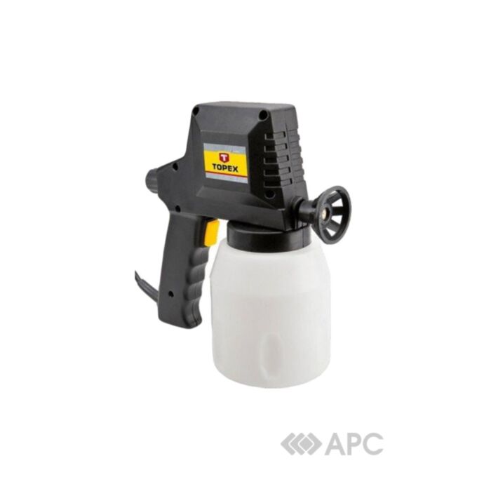 Изделие Topex 75M001 имеет диаметр форсунки 0,6 мм. Объем рабочего нижнего бака 1000 мл. Изготавливается из качественного пластика. Всё это сопутствует тому, что он является легким, прочным и простым в управлении, может использоваться как в бытовых, так и в профессиональных окрасочных работах.