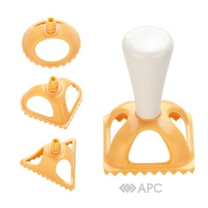 Формочки помогут вам в приготовлении классической и оригинальной итальянской пасты равиоли в форме колец, треугольников, квадратов и сердечек. Подходит для мытья в посудомоечной машинке.