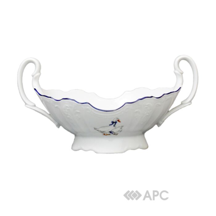 Фруктовница Thun Bernadotte 23 см – это несравнимая изысканность, превращающая этот обычный бытовой элемент в настоящее художественное произведение. Она станет полезной для стола на семейные праздники или дружеские застолья, а также для украшения интерьера. Основой для нее стал фарфор, который издавна считается элитным материалом: он прочен, устойчив к механическим повреждениям, не поглощает запахов и даже через десятилетия сохранит свой блеск и красоту. Она отличается благородным белым с синим цветом, тонкостью и прозрачностью. Дизайн был вдохновлен классической эстетикой прошлых эпох: плавные края и фактурный рисунок с нежным мотивом идеально сочетаются в совершенной форме.