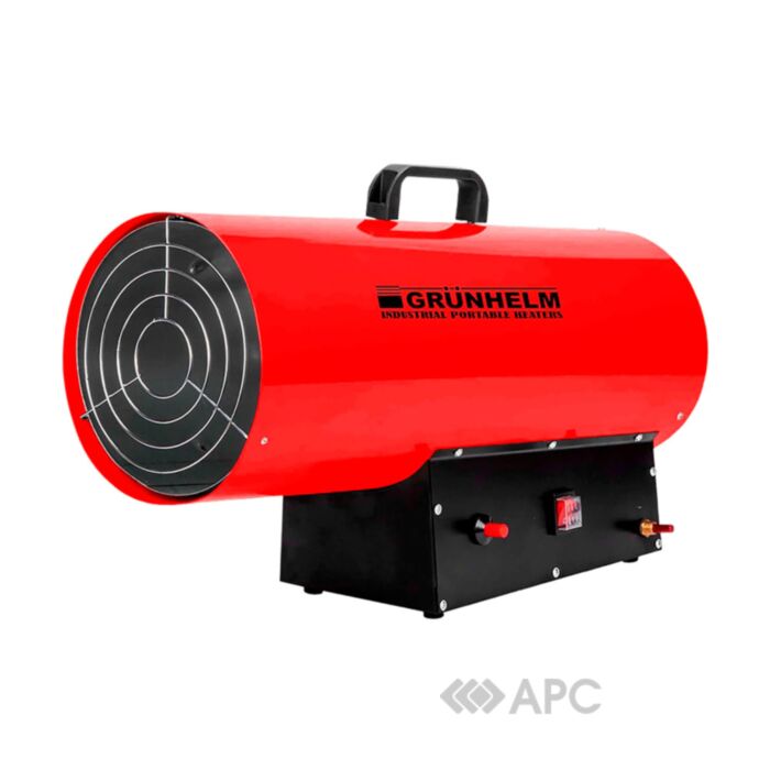 Газовый нагреватель Grunhelm GGH-30 подойдет для организации дополнительного обогрева, а также в качестве основного, например, для гаража, мастерской, склада. Отсутствие запаха при работе обогревателя оставляет воздух чистым и свежим. Данная модель характеризуется высокой производительностью, почти 100 процентов топлива сгорает, издавая при этом 30 кВт тепловой мощности. Через газовую горелку в час проходит около 650 м³ воздуха. Расход топлива составляет 2,18 кг на час работы. Термостат предотвращает перегрев устройства. Благодаря компактным размерам и небольшому весу, газовый нагреватель Grunhelm GGH-30 с легкостью можно перемещать для обогрева нужной зоны.