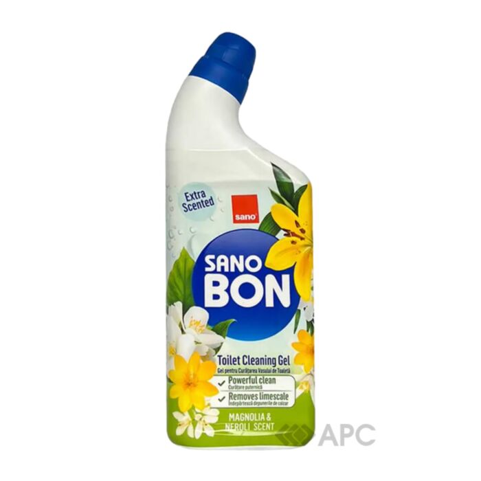 Гель для чистки унитаза Sano Sanobon Магнолия и Нероли 750 мл имеет уникальную формулу для быстрого и эффективного устранения различных загрязнений. Неионогенные и катионные поверхностно-активные вещества легко удаляют грязь, а соляная кислота разрушает известковый налет, мочевой камень и стойкий осадок. Важною особенностью является специальная эргономичная форма емкости, позволяющая наносить жидкость прямо под ободок унитаза. Специализированная бытовая химия уже после первого применения возвращает белизну, обеспечивает чистоту и свежесть в санузле, а при регулярном использовании гарантирует идеальный результат, защиту от бактерий и привлекательный блеск поверхности.