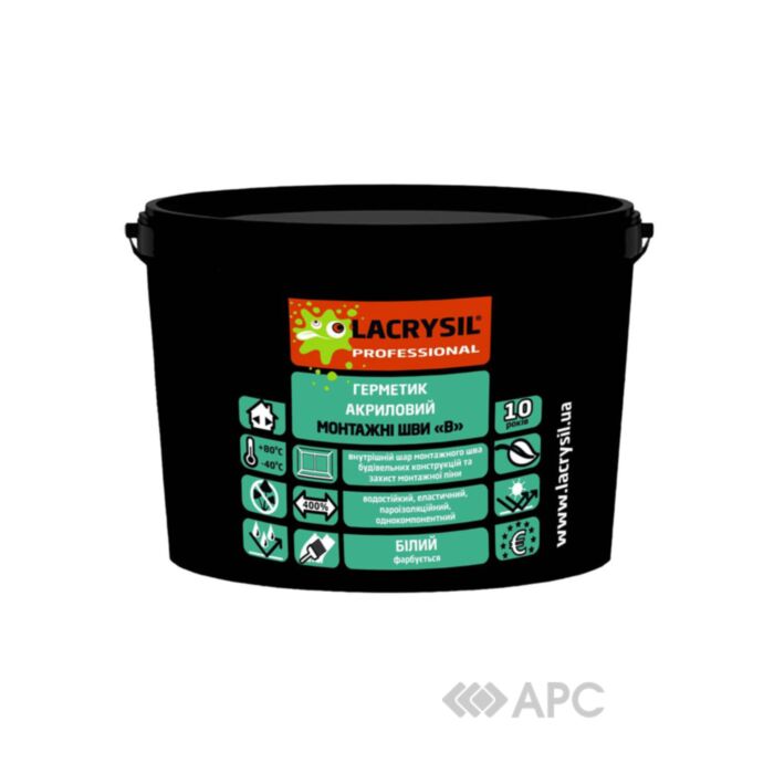 Герметик для швов Lacrysil внутри помещений В белый 7 кг предназначен для уплотнения трещин, стыков и выполнения внутреннего шва оконных и дверных коробок и других конструкций. Имеет высокую адгезию с деревом, бетоном, кирпичом, камнем, пенобетоном, алюминием, штукатуркой и другими материалами. После отверждения легко окрашивается акриловыми красками. Обладает высокой эластичностью и повышенной водостойкостью. Подходит для внутренних работ. Идеален для вертикальных швов. Экологически чистый продукт. Температура при работе +5...+35 °C. Время высыхания 24-48 часов. Срок хранения 18 месяцев.