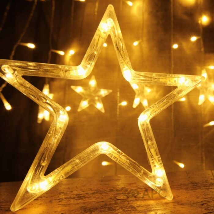 Гирлянда Elisey Звезды 9133-032 - это волшебный элемент декора, который привнесет в ваш дом атмосферу зимнего чуда и праздничности. Длиной 3,2 метра, она оснащена 140 LED-фонариками в форме изящных звезд, которые светятся теплым золотистым светом. Большие фигурки звезд свисают на 60 см, а меньшие - на 40 см, создавая игривый и динамичный вид, который украсит любое пространство.