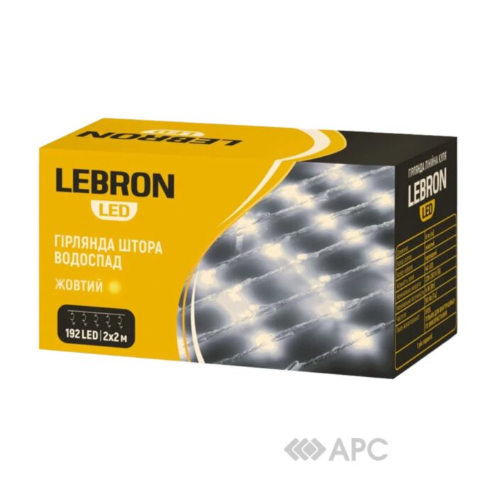 Гирлянда штора Lebron Водопад 15-18-85 192 LED 2*2 м желтый может быть актуальной не только к новогодним праздникам, но и в каждодневном использовании. Стильный декор в оригинальном выполнении полностью меняет помещение, создает уют и теплую атмосферу как дома, так и в любом общественном месте. Гирлянда для штор в интерьере играет важную роль универсального светового украшения, она имеет несколько режимов работы и низкий уровень энергопотребления. Такая занавес — это отдельные линейные гирлянды, элегантно ниспадающие вниз от карниза вдоль всей длины штор.