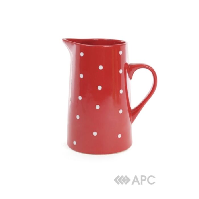 Кувшин красный керамический белый горох 1 л BonaDi 593-204 отличается удобной формой и интересным актуальным цветом.