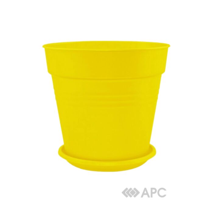 Горшок Алеана Глория с подставкой 11*10,2 см темно-желтый имеет функциональную трапециевидную форму для пересадки растений с компактной корневой системой, к которым можно отнести фиалку, спатефиллум, декабристы и фуксии. Изделие изготовлено из надежного пропилена с высокими техническими и эксплуатационными свойствами. Качество сырья гарантирует высокие показатели эластичности и прочности горшка. Поверхность изделия имеет насыщенный цвет, не выгорающий на солнце, а также не допускающий перегрева корней. Емкости могут использоваться как внутри помещения, так и на улице.