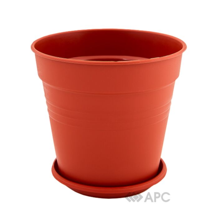 Горшок Алеана Глория с подставкой 114018 18,5*18 см терракотовый имеет функциональную трапециевидную форму для пересадки растений с компактной корневой системой, к которым можно отнести фиалку, спатефиллум, декабристы и фуксии. Изделие изготовлено из надежного пропилена с высокими техническими и эксплуатационными свойствами. Качество сырья гарантирует высокие показатели эластичности и прочности горшка. Поверхность изделия имеет насыщенный цвет, не выгорающий на солнце, а также не допускающий перегрева корней. Емкости могут использоваться как внутри помещения, так и на улице.