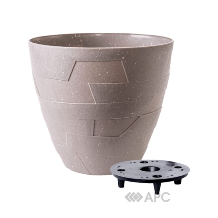 Горшок Алеана Керамо 128004 со вставкой 29,5*26,5 см капучино бетон - это элегантное и практичное решение для домашнего озеленения, которое сочетает в себе функциональность и привлекательный дизайн. Он предназначен для выращивания различных комнатных растений, цветов или небольших декоративных кустарников. Изготовлен из прочного и качественного пластика, что обеспечивает его легкость, долговечность, устойчивость к влаге и перепадам температур, а также простоту ухода. Внутренняя вставка создает пространство на дне вазона, что позволяет накапливаться избыточной воде, предотвращая застой и загнивание корней.