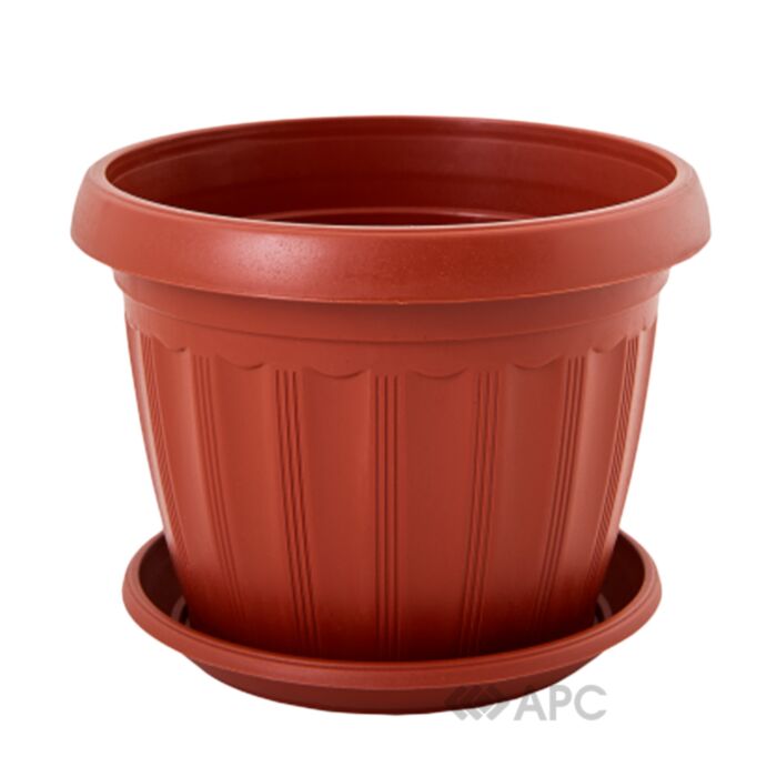 Горшок Алеана Терра с подставкой 20*15 см имеет функциональную трапециевидную форму для пересадки растений с компактной корневой системой, к которым можно отнести фиалку, спатефиллум, декабристы и фуксии. Изделие изготовлено из надежного пропилена с высокими техническими и эксплуатационными свойствами. Качество сырья гарантирует высокие показатели эластичности и крепости горшка. Поверхность изделия имеет насыщенный цвет, не выгорающий на солнце, а также не допускающий перегрева корней. Емкости могут использоваться как внутри помещения, так и на улице.