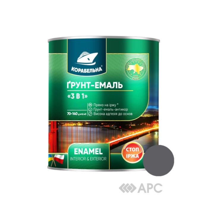 Грунт-эмаль 3 в 1 Корабельная графит 0,7 кг является однокомпонентной краской, которая сочетает в себе антикоррозионную защиту и декоративную покраску. Этот продукт характеризуется высокой устойчивостью к УФ-излучениям и атмосферным воздействиям, благодаря чему обеспечивает надежную защиту металлических поверхностей, таких как металлоконструкции промышленного назначения, технологическое оборудование, сельскохозяйственная техника, двигатели, мосты, дорожные ограждения и тому подобное. Он также подходит для обработки деревянных, бетонных и других поверхностей как снаружи, так и внутри помещений.