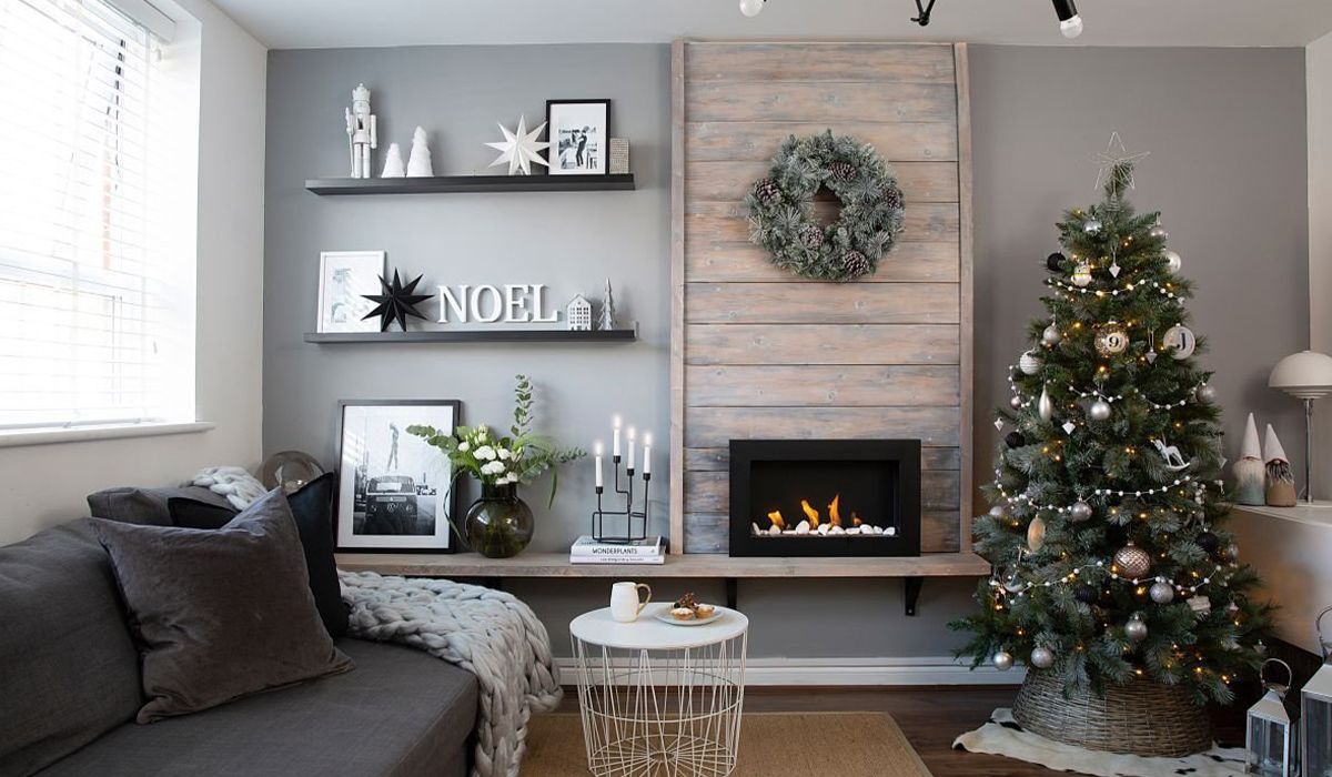 Рождественская эстетика гармонично дополняет современный интерьер комнаты в пастельных оттенках. Пол украшает ламинат Kastamonu River WR Thames Oak SRV005 5088743 4V 32 класс 8 мм, добавляя ей теплого природного оттенка и домашнего уюта. Диван Lorenzo Standart темно-серый у окна является удобным местом для отдыха. Полки украшает стильный декор в виде свечей, елок, звезд и декоративной статуэтки Домик BonaDi с LED-подсветкой 733-723 16,5 см. Елка Ковалевская литая 180 см, размещенная у камина, создает нарядную праздничную композицию вместе с венком декоративным заснеженным из искусственной хвои Bonadi 840-127 60 см. Зеленую хвою стильно дополняет набор елочных шаров BonaDi 147-151 40 шт теплого серого оттенка. Яркие огоньки Рождества дарит деревянный фонарь Gilde Boaco 51461 87 см возле елки, а забавные гномы зовут в сказку взрослых и детей. На столике парит кофе, аромат праздничной выпечки добавляет особой атмосферы и ощущение покоя.