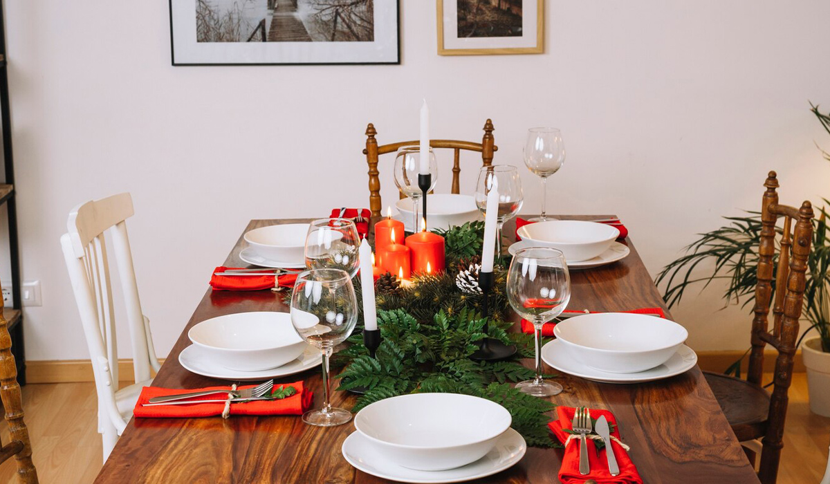 Запах хвои, мерцающие огоньки свечей и багряный цвет домашнего текстиля создаст возвышенную атмосферу рождественских праздников. Комната сияет уютом и теплом, гостеприимно приглашая к столу. Классические светлые оттенки ламината Peli Parquet Anatolia Gold AN905 4-V 33 класс 8 мм и плинтуса Arbiton Indo70 09 дуб изысканный 70*26*2500 мм придают естественный вид полу. Стол раскладной Deli S дуб больцано/черный тщательно приготовлен к праздничному обеду. Традиционность белой посуды подчеркивает особую атмосферу: блюдо круглое глубокое Wilmax 991119 30,5*30,5 для каждого человека и салатник Luminarc Carine White D2370 27 см сияют чистотой и торжественностью. Красные акценты расставлены в виде салфеток сервировочных Tescoma Purity Flair 662316, украшенных веточками зелени. Блески свечей множатся в тонком прозрачном стекле набора бокалов для вина Bohemia Colibri/Gastro 4S032 570 мл 6 шт. Праздничная композиция в центре стола, составленная на основе венка декоративного Ковалевский Siga Group литой голубой и ярких красных свечей, создает новогоднее настроение и дополняет эстетику сервировки.