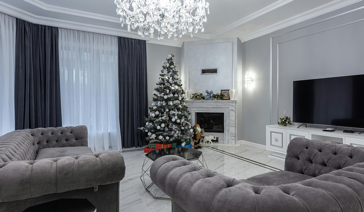 Гостиная Opoczno Calacatta Monet с рождественским декором