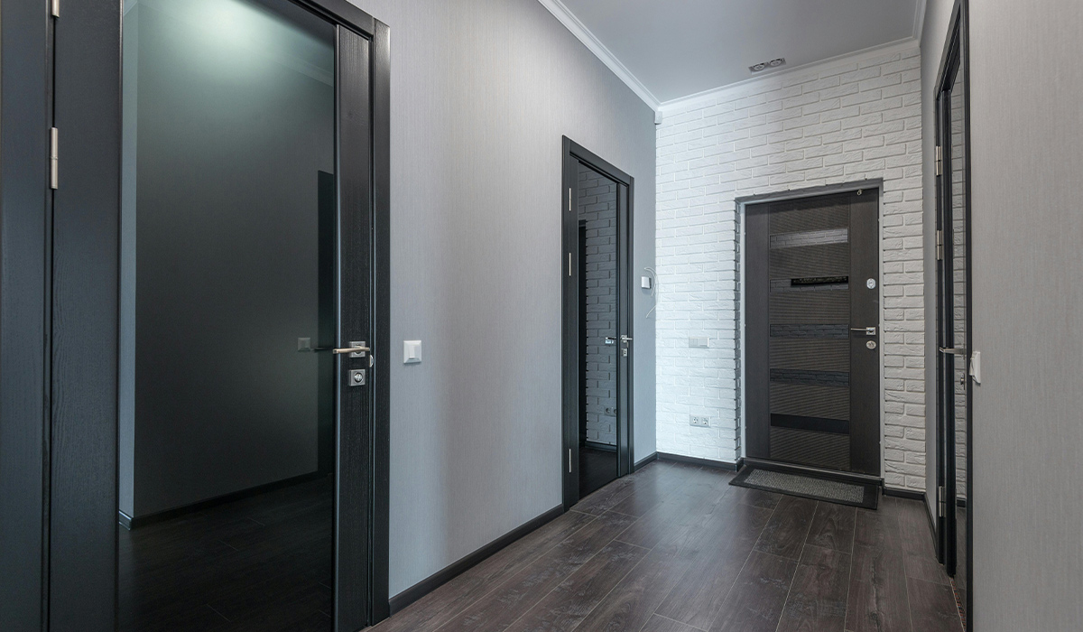 У входной двери установлен двухклавишный переключатель Erste Triumph 9202-32 белого цвета, органично вписывается в общий стиль. Эта прихожая сочетает в себе функциональность и эстетику, создавая комфортное и стильное первое впечатление для гостей.