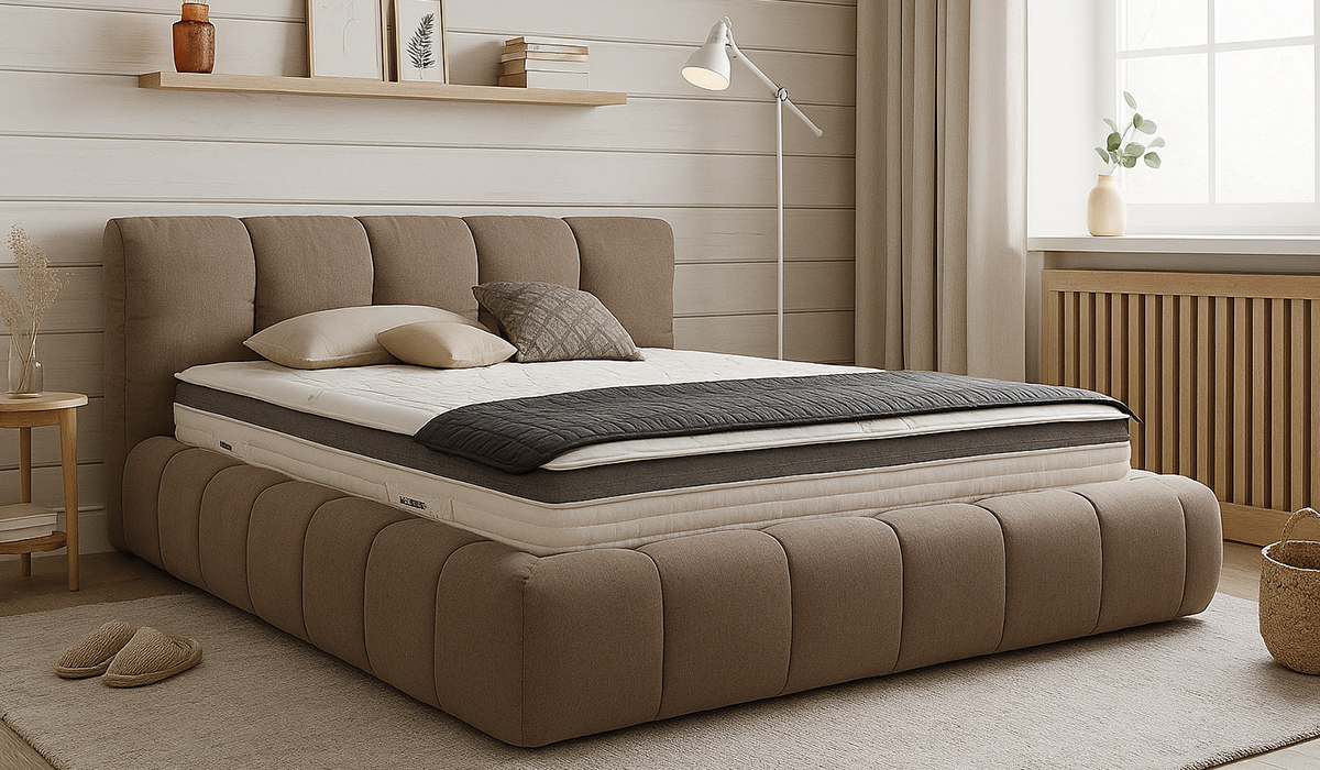 Планируя спальню в стиле хюгге, стоит закрыть глаза и вспомнить вещи, дарящие радость и ощущение счастья. Книги, свечи, теплая одежда, ароматная выпечка, старые фотографии, хранящие память о важных для нас людях, — у каждого свой набор тепла и уюта. Именно такие аксессуары в сочетании с пастельными цветами и натуральными материалами составляют основу стиля. Сдержанный теплый оттенок ламината Kastamonu Life Benfica Oak KT403 5086045 4V 32 класс 8 мм на полу вместе с отделкой стены создаёт спокойное пространство для качественного отдыха. Большая кровать Lareto Palle Newton 417 темно-серая с беспружинным матрасом BRN Exuberant 160*200 см олицетворяет домашний уют и комфорт. Над ней размещена полка Summer TYP 61 сан ремо светлый для хранения важных мелочей: книг, записных книжек, гербария и декора. Изящный стильный торшер Svet SWT-3010 WH белый у кровати создаёт прекрасное место для чтения и тёплых разговоров. Растительный декор в вазе Bohemia Crystal Petra B82530 14,5 см и плетёная корзина — небольшие детали, создающие совершенство стиля.