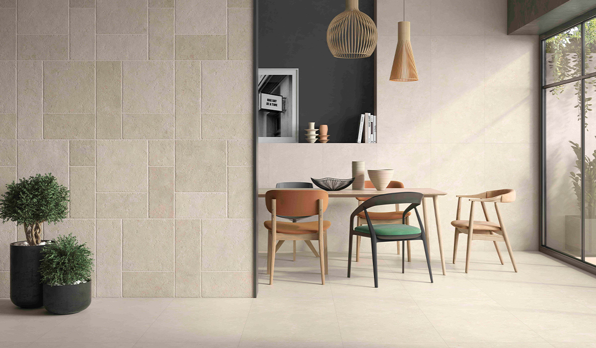Столовая комната, оформленная в стиле минимализма, акцентирует внимание на легкости пространства и его лаконичном совершенстве. В отделке стен использовано керамогранит QUA Granite ARK Ivori Mat 60*120 см айвори и керамогранит Intercerama Gray 01082 Rec 120*60 см черный в идеальной пропорции, где темный цвет создает лишь небольшой фон для книжной полки, а светлый объединяет различные плоскости для особого визуального эффекта. Размещение стола обеденного раскладного Vetro TM-120 120*80 см бардилио лайт/бук вблизи окна предусматривает его отличное естественное освещение и красивый пейзаж рядом, что придаст особую атмосферу во время приемов пищи. Стулья обеденные металлические Vetro М-100 горчичные обеспечивают комфорт и обогащают цветовую палитру комнаты. Современное плетение корзины для фруктов Ardesto Midori AR0903B 28 см повторяет изящные линии светильников, расположенных над столом. Свежий акцент создает композиция живых вазонов в стильных графитовых горшках, что добавляет домашнего уюта и природной гармонии комнате.