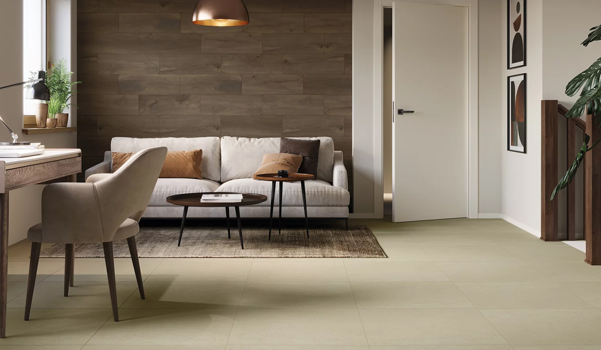 Гостиная - это обычно самая большая комната, где проводим много времени, поэтому ее цветовая палитра должна вызывать приятные эмоции, успокоение и умиротворение. Игра оттенков теплого коричневого хорошо сочетается с элегантным молочным цветом пола, украшенного керамогранитом Inspiro Ivory 60*60 см айвори. Глубокий шоколадный керамогранит Cersanit Wood Finwood Brown 1с 18,5*59,8 см на стене навевает вкус горького лакомства и придает особое настроение и уют комнате. Межкомнатные двери ПВХ Омис Cortex 600 мм белый silk matt создают эффектный контраст и продолжают нарядную эстетику стен. Комфортное место отдыха предлагает диван Veko Home Мальта Darwin 452 светло-серый вместе с подушками декоративными ТЕП Велюр 40*40 золотой беж и журнальными столиками разной высоты. Спокойное освещение обеспечивает стильный светильник подвесной Nowodvorski Candy 10293 шоколадный, что создает атмосферу теплоты и гармонии.