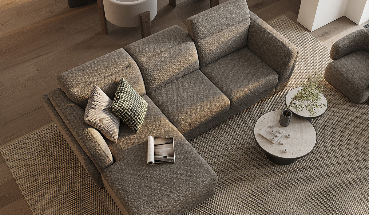Уютная атмосфера просторной гостиной располагает к качественному отдыху, интересным разговорам и приятному досугу. Диван угловой Roshe Келли Avelina 9811 коричневый в центральной части комнаты сочетает элегантный дизайн и идеальный комфорт для всей семьи. Его сдержанную эстетику дополняет кресло DLS Аква-1 серое и рельефный ковер, мозаичная структура которого придает особую динамику помещению. Пол, украшенный ламинатом Kronopol Perfect House Дуб Падуя 32 класс 8 мм, воспроизводит красоту натуральной древесины и согревает глубоким оттенком коричневого цвета. Белые стены окутывают элегантным спокойствием интерьерной краски латексной Element 3 база А матовой белой 10 л и визуально расширяют пространство для развлечений и отдыха.