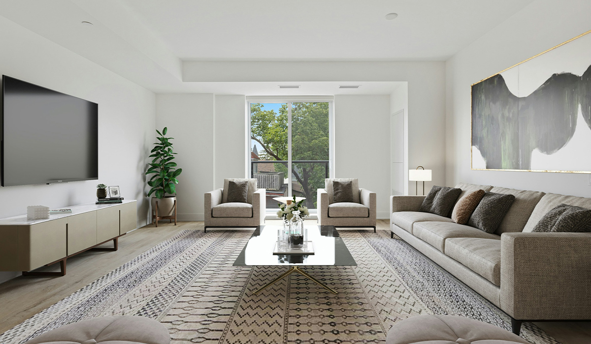 Прямоугольная форма комнаты требует конструктивных дизайнерских решений в отделке и расположении мебели для создания гармонии и уюта. Пол сдержанного классического оттенка, отделанный ламинатом Rezult Prestige PG129 Дуб Монтезум 32 класс 4-V 8 мм, подчеркивает легкость и невесомость пространства. Стены, окрашенные интерьерной краской акриловой Ceresit IN 53 Lux база А 5 л, усиливают естественное освещение и расширяют пространство. Диван Лино тройной бежевый, размещенный вдоль стены, позволяет приятно наслаждаться пассивным отдыхом, проводить время в кругу друзей или семьи. Кресло DLS Магнум Steel молочное у окна предлагает уютное место для чтения или содержательного разговора. Два пуфа Richman Катрин Жасмин 21 бежевые замыкают периметр мягких поверхностей и гармонично дополняют эстетику комнаты. На журнальном столике эффектно смотрится цветочная композиция и набор для ликера Bohemia Quadro 99999A44/45. Комнатное растение в углу гостиной оживляет пространство, добавляя ему свежих сочных красок.