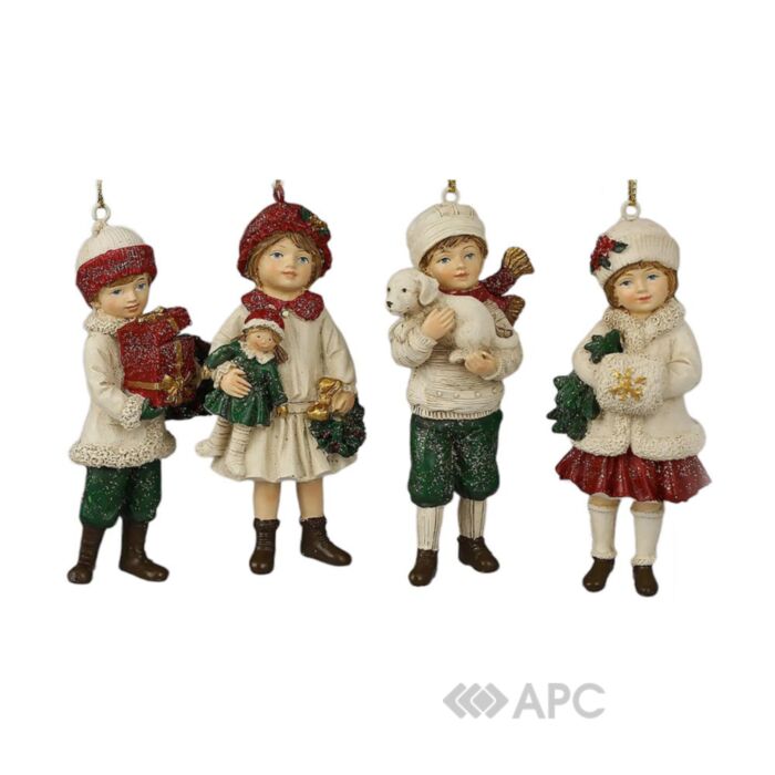 Игрушка на елку Детки BonaDi 11,5 см 4 дизайна — это теплая атмосфера праздника, которая будет радовать детей, взрослых и гостей дома. Дизайн представлен в ассортименте из четырех вариантов. Он представляет собой изображение детей в теплой зимней одежде, что в руках держат свои новогодние подарки. Внимательная детализация поражает: фактурная одежда с интересными элементами, аккуратная прорисовка, поверхность с блестками. Винтажный стиль и цветовая гамма в бежевых, красных и зеленых тонах создадут уникальный шарм в любом интерьере.