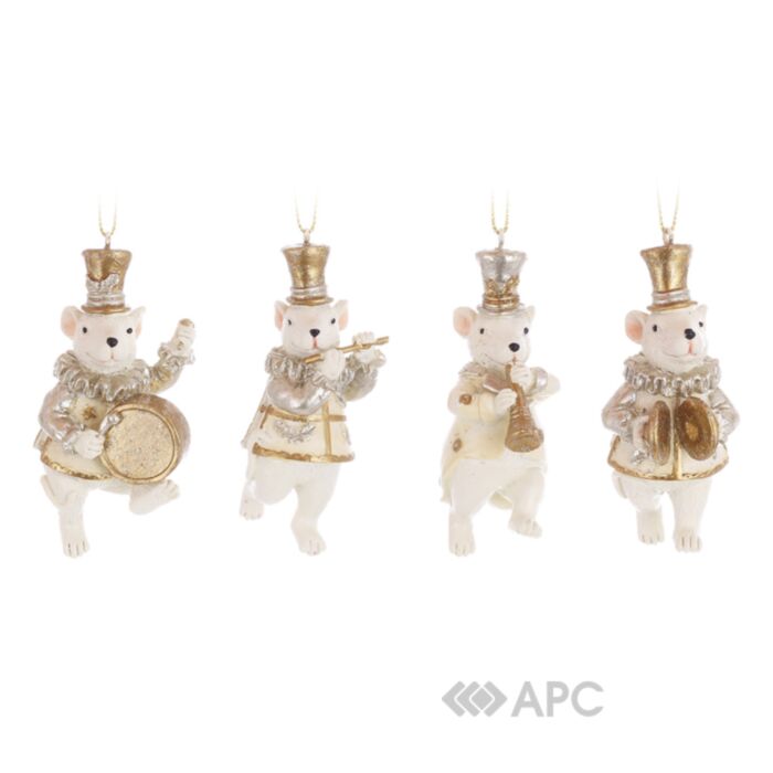 Игрушка на елку Мыши-музыканты BonaDi K07-710 9 см 4 дизайна — это изысканная атмосфера праздника, которая будет радовать детей, взрослых и гостей дома. Дизайн представлен в ассортименте из четырех вариантов. Дизайн представлен в ассортименте из четырех вариантов. Он представляет собой изображение мышек в красивой одежде, которые в руках держат свои музыкальные инструменты. Внимательная детализация поражает: фактурная одежда с интересными элементами, аккуратная прорисовка, поверхность с блестками. Винтажный стиль и цветовая гамма в пастельных молочных и золотых тонах, создадут элегантный шарм в любом интерьере.