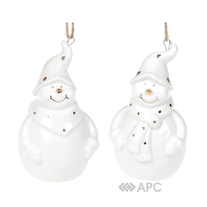 Фарфоровый декор украшение елочное Снеговик BonaDi FG2-303 10 см 2 дизайны — совершенно исключительное изделие, по которому с первого взгляда на него видны высокое качество и неповторимый стиль. Такая фигурка станет достойным украшением любого интерьера не только в период зимних праздников, но и в любой другой день. Модель относится к коллекции Снежная мечта, которая отличается белоснежной и золотой гаммами, которые являются классическим универсальным решением для создания композиций с любыми другими цветами и оттенками.