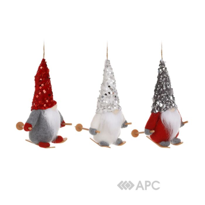 Игрушка новогодняя мягкая подвесная Гномик на лыжах BonaDi 822-421 18 см 3 дизайна станет украшением вашего интерьера, ее можно поставить на стол или журнальный столик, изящно украсив декоративными стилизованными подсвечниками, цветком Пуансеттии, новогодним венком и застелив рождественскую скатерть.