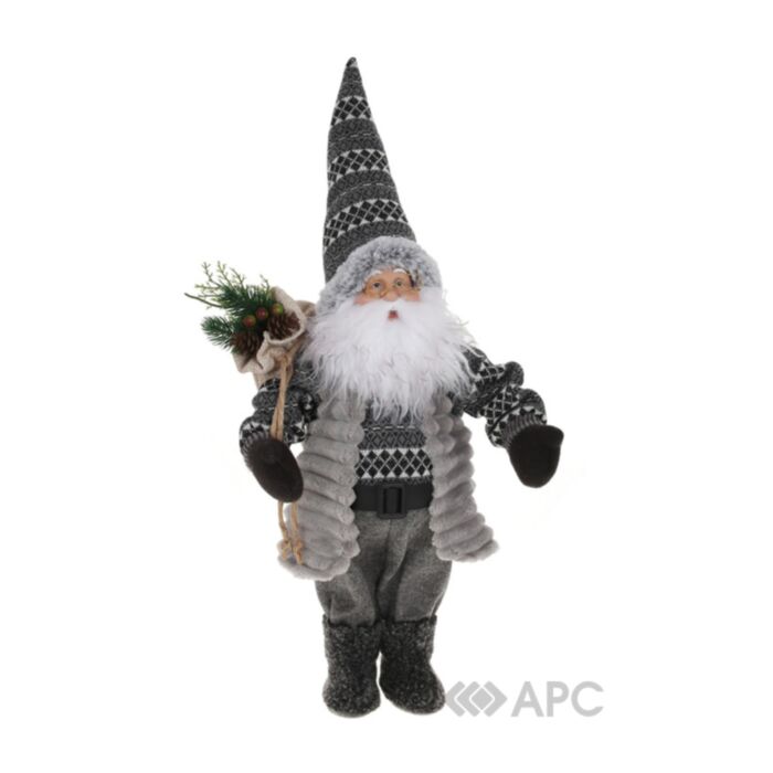 Игрушка новогодняя мягкая Санта BonaDi 822-383 45 см серая станет украшением вашего интерьера, ее можно поставить на стол или журнальный столик, изящно украсив декоративными стилизованными подсвечниками, цветком Пуансеттии, новогодним венком и застелив рождественскую скатерть.