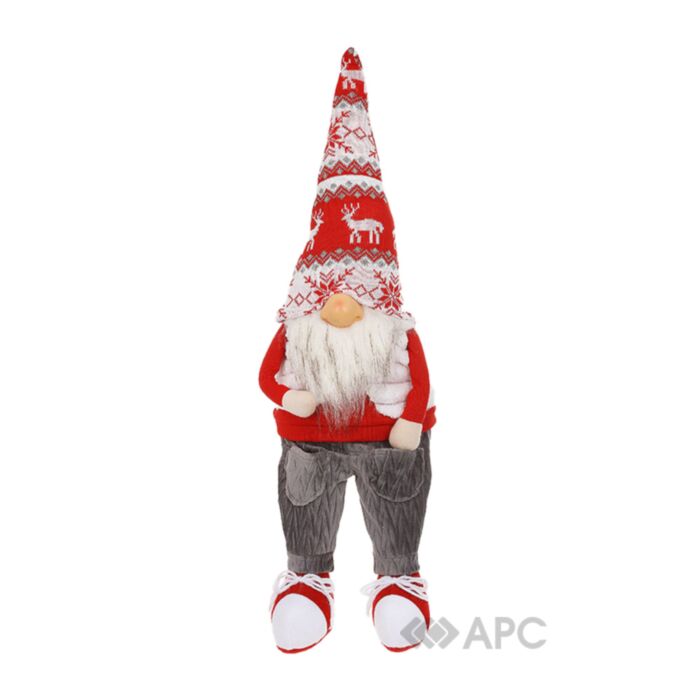 Игрушка новогодняя мягкая Сидячий Гном BonaDi 877-385 58 см красная станет украшением вашего интерьера, ее можно поставить на стол или журнальный столик, изящно украсив декоративными стилизованными подсвечниками, цветком Пуансеттии, новогодним венком и застелив рождественскую скатерть.
