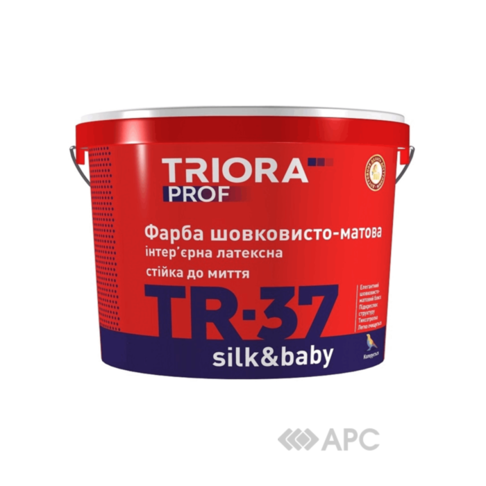 Интерьерная краска латексная Triora TR-37 silk and baby шелковистая 10 л - это высококачественная латексная краска с шелковисто-матовым блеском, разработанная специально для окрашивания детских комнат и других помещений, где необходима повышенная устойчивость к мытью. Благодаря высокой укрывистости и отличной адгезии к поверхностям, она легко наносится равномерным слоем, не распыляется и идеально подходит для обоев под покраску, а также бетонных, оштукатуренных, кирпичных и других пористых поверхностей.