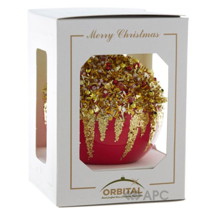Стеклянный шар ручной работы "Д-215" Orbital 80 мм красный красиво выглядеть как на искусственной, так и на живой елке. Он может быть отличным вариантом в качестве подарка. Яркие цвета, оригинальные узоры, интересные декоративные элементы в виде блесток, бусин, стразов делают эксклюзивные елочные игрушки настоящим произведением искусства. Каждая из них бережно расписана руками художника-декоратора является оригинальной и особой, скрывает в себе маленький огонек тепла и чуда новогодних праздников. Поэтому, купите стеклянную игрушку ручной работы на новый год и подарите себе и своим близким немного радости и праздничного настроения!