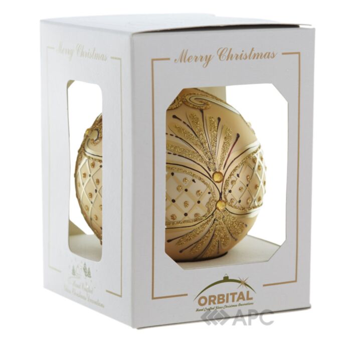 Стеклянный шар ручной работы "Д-327" Orbital 80 мм красиво выглядеть как на искусственной, так и на живой елке. Он может быть отличным вариантом в качестве подарка. Яркие цвета, оригинальные узоры, интересные декоративные элементы в виде блесток, бусин, стразов делают эксклюзивные елочные игрушки настоящим произведением искусства. Каждая из них бережно расписана руками художника-декоратора является оригинальной и особой, скрывает в себе маленький огонек тепла и чуда новогодних праздников. Поэтому, купите стеклянную игрушку ручной работы на новый год и подарите себе и своим близким немного радости и праздничного настроения!