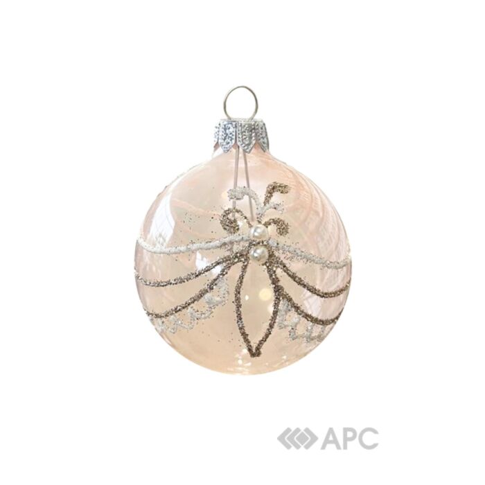 Елочная игрушка стеклянная ручной работы Orbital А-100 Ажур 6 см пудра в каталоге ARS