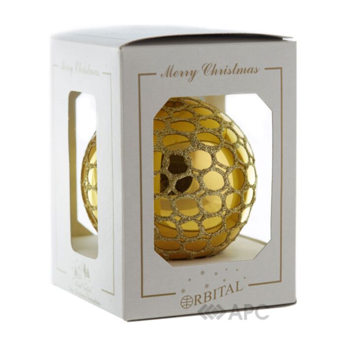 Стеклянный шар ручной работы "Соты" Orbital 80 Д-167 золотой глянец красиво выглядеть как на искусственной, так и на живой елке. Он может быть отличным вариантом в качестве подарка. Яркие цвета, оригинальные узоры, интересные декоративные элементы в виде блесток, бусин, стразов делают эксклюзивные елочные игрушки настоящим произведением искусства. Каждая из них бережно расписана руками художника-декоратора является оригинальной и особой, скрывает в себе маленький огонек тепла и чуда новогодних праздников. Поэтому, купите стеклянную игрушку ручной работы на новый год и подарите себе и своим близким немного радости и праздничного настроения!