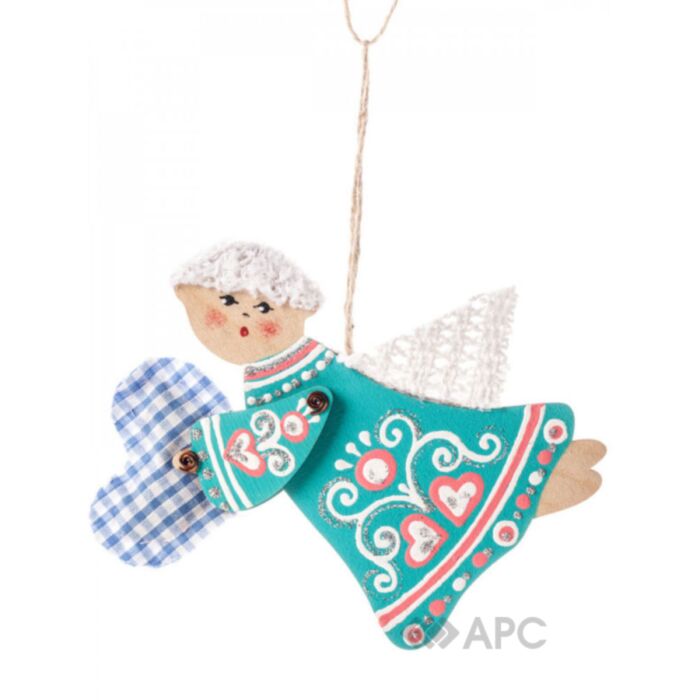 Ангел, который приносит счастье Koza Dereza 2005010018 мятный – игрушка сделана из натуральных материалов, безопасна для детей. Игрушка изготовлена из дерева. Сердце, которое держит ангел наполнено ароматными травами: мятой, тимьяном, цветом базилика. Характерная народная роспись делает каждое изделие максимально аутентичным и душевным, что придает дому глубину и наполненность, далекие от товаров массового потребления. Такой ангел будет своеобразным оберегом благополучия и уюта.