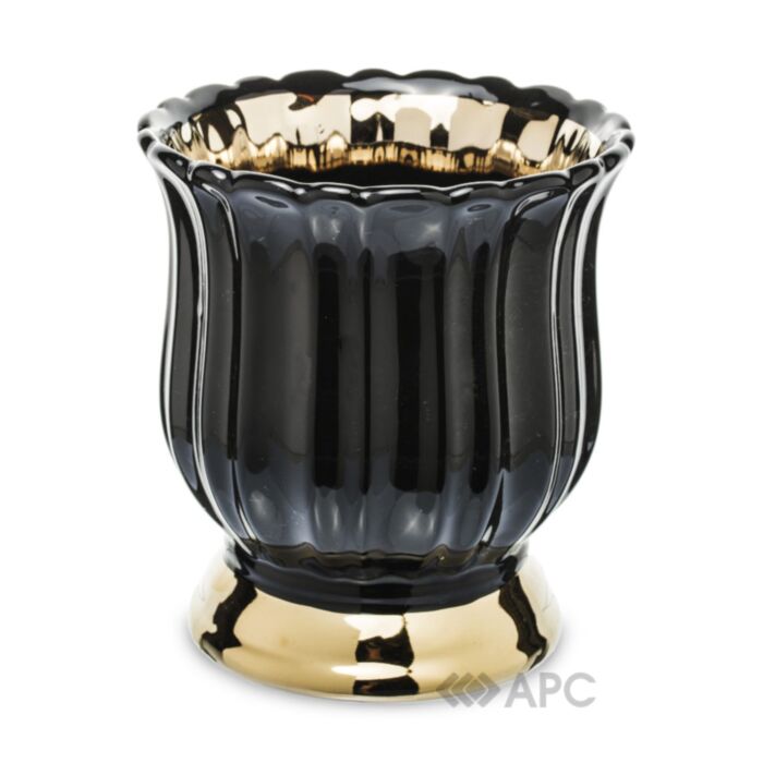 Кашпо Art-pol 130939 14,5*13*13 см - это невероятно стильное дополнение к любому интерьеру. Черный горшок с вертикальными полосами и золотой отделкой создаст неповторимую атмосферу в квартире или частном доме. Данный элемент сделан из прочной керамики, что предотвращает растрескивание изделия, обеспечивает его устойчивость к любым погодным условиям. Товар сочетает в себе оригинальность и максимальную практичность.