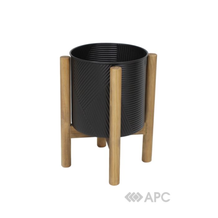 Кашпо изготовлено из железа и имеет черный цвет. Поверхность имеет рельефный узор, что придает текстуру и визуальный интерес. Подставка выполнена из натуральной древесины акации, которая обеспечивает прочность и устойчивость конструкции. Габаритные размеры составляют: длина 26 см, ширина 26 см, высота 42 см. Это сочетание материалов и минималистичного дизайна позволяет кашпо гармонично вписаться в современные интерьеры, добавляя им естественных акцентов и элегантности.